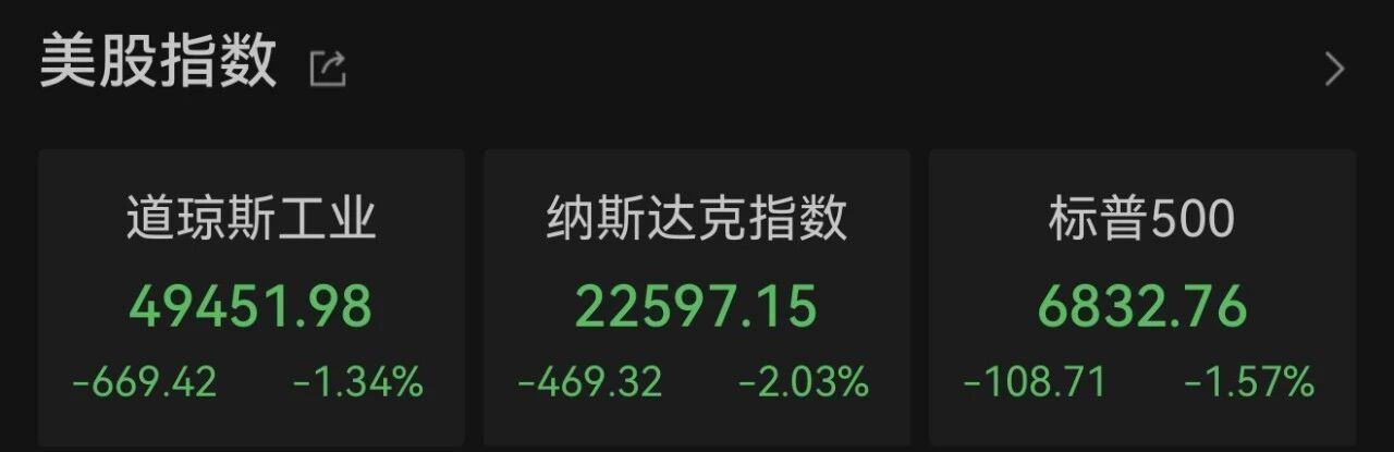 当地时辰2月12日万博manbext体育官网app官网,好意思股三大股指集体收跌,热点科技股普跌,纳斯达克指数下降超2%。 巨额商品方面,金价、银价双双大跌,现货白银价钱盘中跳水,跌幅一度逾越11%。 热点科技股普跌 当地时辰2月12日,Wind数据清醒,截止收盘,说念琼斯工业指数跌669.42点,跌幅为1.34%,报49451.98点;纳斯达克指数跌469.32点,跌幅为2.03%,报22597.15点;标普500指数跌108.71点,跌幅为1.57%,报6832.76点。